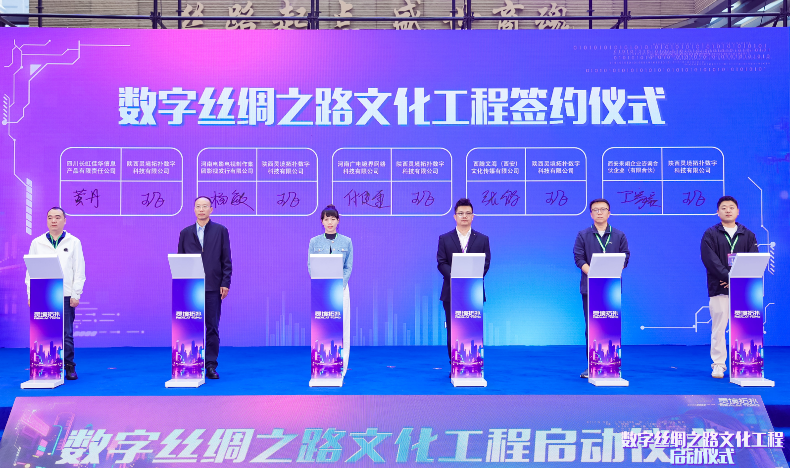 9 月 27 日, “数字丝绸之路文化工程”在隋唐丝绸之路起点——西安大唐西市启动。来自中国、韩国、哈萨克斯坦等 “一带一路” 沿线国家的政府代表、企业负责人、文化学者齐聚一堂,共同见证这一旨在推动文明互鉴、促进数字合作的重要工程启航。10余家企业现场签约,为工程全面推广落地奠定坚实合作基础。