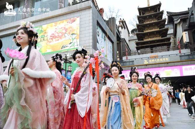 大唐西市·西市城依托盛唐与丝路文化,以花为媒、深耕非遗,通过“传统节日+文旅消费”模式,搭建起传统文化与现代生活的桥梁,既彰显文化自信,也为千年丝路起点注入新的文旅活力,为中华优秀传统文化注入创新传承的当代活力。