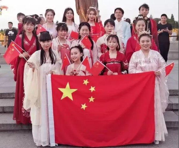 挥舞着国旗的汉服小姐姐云集西市,惊不惊喜?养不养眼?充满浓浓中国风的快闪表演,搞不清状况的还以为“穿越”了呢