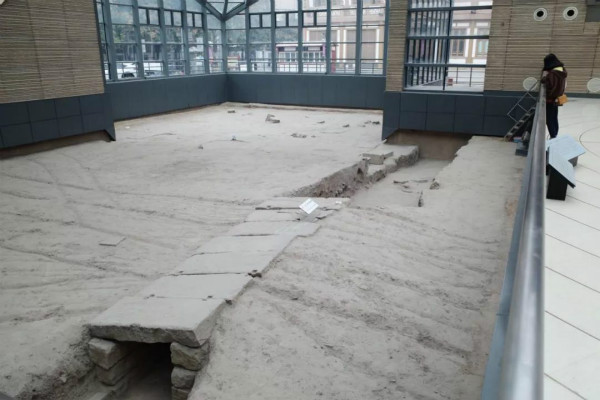 ▲ 博物馆就建在西市遗址上,石桥两侧的车辙还在,远处应该是一处店铺建筑
