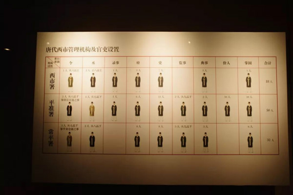 作为大都会的交易中心,自然也要妥善管理,图中是在市场管理的各种公务员职位。西市署负责市场的整体物业管理;平准署相当于市场物价局;常平署则管理的是市场的仓储和物流。