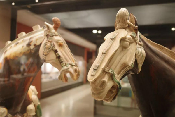 ▲ 馆内陈列着各种样式的唐三彩大花马