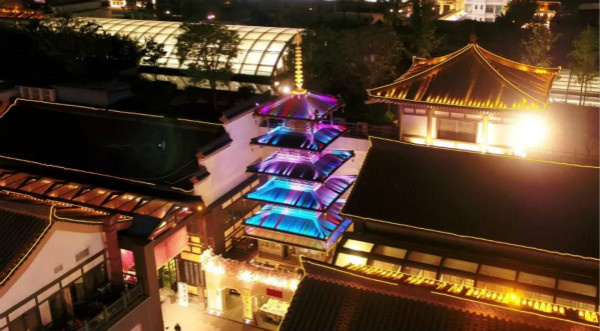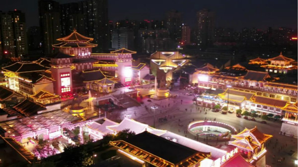 千余米的丝绸之路风情街,从西安穿越到长安,看巨型浮雕“筑造大兴”、敦煌石窟、尼泊尔菩提树、柬埔寨吴哥窟浮雕、泰国馆树抱佛头,法隆寺五重塔……