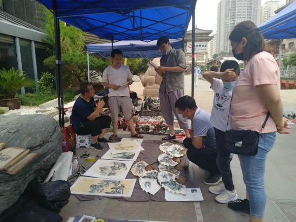 这位做古玩、老玉的摊主,早已是大唐西市的老朋友了,平日里他在古玩城也有自己的店铺,他说,疫情以来生意一直不好,古玩城给了很多好政策,还为大家提供了每周六的“地摊集市”,二十块钱每天的摊位费,还有周道的服务,确实很实惠,相信生意会越做越好。
