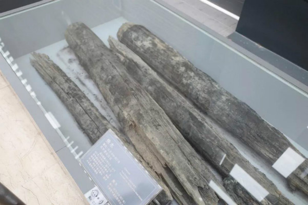 ▲ 店铺房屋用的木头桩子,已经烧焦了