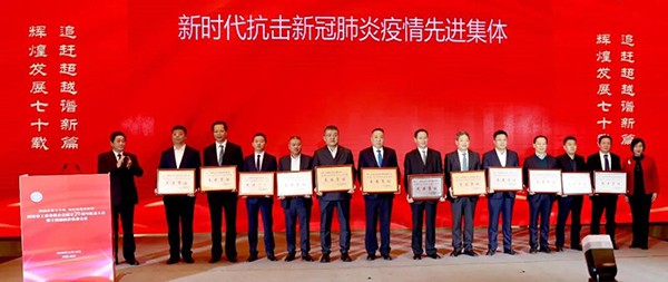 会上对区县工商联、抗击新冠肺炎疫情、助力脱贫攻坚和助力民生发展先进集体进行表彰通报。全国人大代表、中国民营文化产业商会会长、大唐西市集团董事局主席吕建中受邀参会,代表大唐西市集团领取了“新时代抗击新冠肺炎疫情先进集体”表彰。