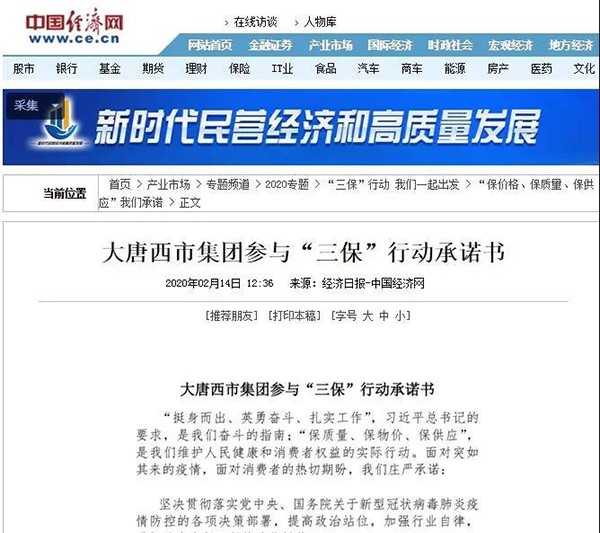 集团切实做好“六稳”工作,全面落实“六保”任务,积极响应国家市场监管部门开展的“保价格、保质量、保供应”活动的号召,签署并发布“三保”行动承诺书。