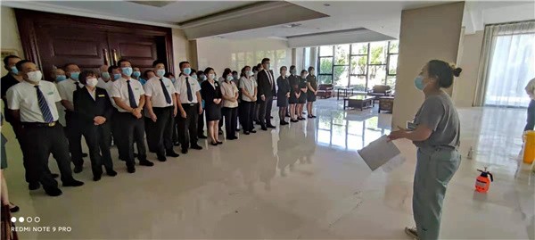 在领导的统筹安排下,宾馆第一时间成立了以总经理石勇强先生为总负责人,各层级领导为成员的责任制保障小组,建立联动机制。从酒店安全、运行、指定区域封闭管理、隔离人员安排、后勤保障、物资保障、防疫防汛、相关政府部门、机关、事业单位外联对接等多方面做了全方位部署,力求做到接待准备工作精准、高效、无死角。