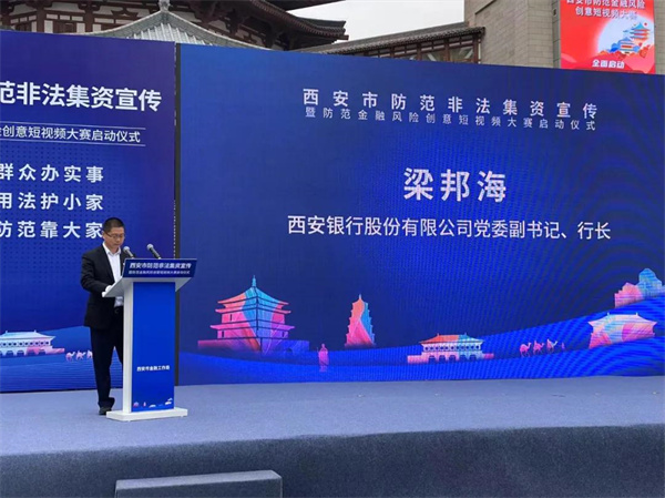活动期间,陕西省地方金融监督管理局二级巡视员王宪安,西安市金融工作局党组书记、局长王丽,西安银行股份有限公司党委副书记、行长梁邦海,莲湖区人民政府副区长薛凯做了重要讲话。