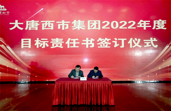 2月26日下午,大唐西市集团“2021年度工作总结、先进表彰暨2022年度目标责任书签订大会”在曲江惠宾苑宾馆隆重召开。集团董事局主席吕建中发表重要讲话,希望大家认真谋划、坚决贯彻,以创新性发展、创造性转变的前瞻性思维,在百年未有之大变局下,抢抓机遇,脚踏实地,整合资源、创新突破、融合发展,全力以赴把集团的各项目标任务落实到位,在2022年这个集团转型升级、高质量发展的元年,踏上新赛道,阔步新征程,取得新成就!