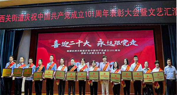 6月29日,西安市莲湖区西关街道党工委在莲湖区委党校举行“喜迎二十大 永远跟党走”——庆祝中国共产党成立101周年表彰大会,庆祝中国共产党成立101周年,对过去一年辖区各项工作中涌现出的先进集体及个人进行表彰。