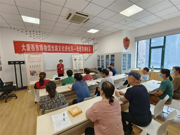 为纪念中国共产党成立101周年,把纪念建党活动与群众路线教育实践活动结合起来,在习近平总书记“一个博物院就是一所大学校”重要指示精神的引领下,2022年7月1日,大唐西市博物馆丝路文化进社区宣讲活动走进自强社区,为社区居民带来了一场精彩的文化盛宴。自强社区党员代表、居民代表、大唐西市博物馆宣讲团队等20余人出席了本次活动。