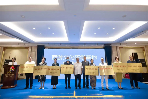 国家文物局原副局长、中国西游记文化研究会总顾问张柏,中国西游记文化研究会副会长祁连仲为首批获得认证的西游文化研学基地颁发了牌匾。
