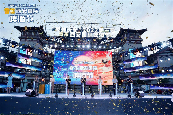 7月29日晚,大唐西市2022年国际啤酒节在大唐西市金市广场精彩开幕为期一个月。本次啤酒节,以“醉”美西市 ·“悦”动莲湖 为主题,充分发挥莲湖区丝路起点的文化区位优势,以盛唐、丝路、西域风情为主线,时尚化、创新化为特点,推出集合啤酒演艺、美食品鉴、非遗展示、时尚潮玩等项目,打造集品牌餐饮、外籍时尚DJ、乐队、歌舞、旅游、赛事、娱乐于一体的大型夏季夜间文旅消费新空间,进一步点亮西安“夜经济”。