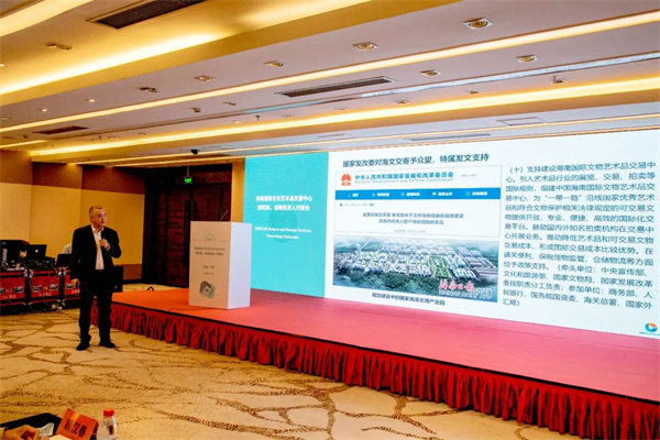 中国文物交流中心党委委员、海南国际文化艺术品交易中心监事长张玉亭,中国民营文化产业商会秘书长顾汉春出席会议并致辞;海南省工商联副主席、海南国际文化艺术品交易中心董事长、国家南海文博产业园董事长王勇作总结讲话。来自北京、上海、河北等地收藏投资、文化科技、文博产业、金融投资等领域的专家和企业代表出席活动。