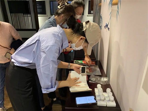 配合展览,我们以铜镜文物元素为基础,将纹饰、铭文等重点提取,创意策划了“人民昌·中国强”汉镜活动热缩片现场手作、汉服体验等活动,并研发出系列文创产品,包括丝巾、手链、帆布包等配饰,文件袋、印章等文具,还有搭配汉服体验活动拍照打卡的仿古扇,创意口罩等更多福利,让观众了解更多祥瑞神兽背后的故事,把“文物”带回家。
