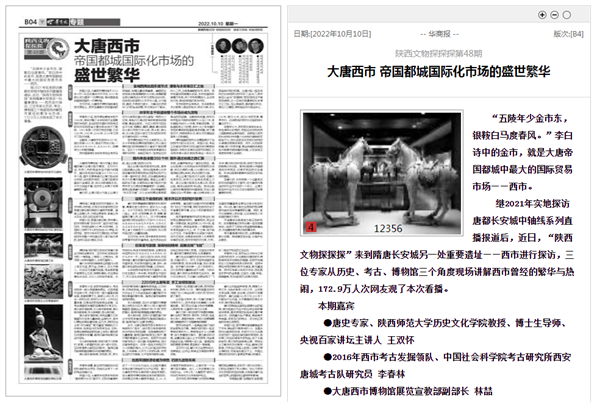 今日,《华商报》整版报道——“陕西文物探探探”第48期:大唐西市 帝国都城国际化市场的盛世繁华。