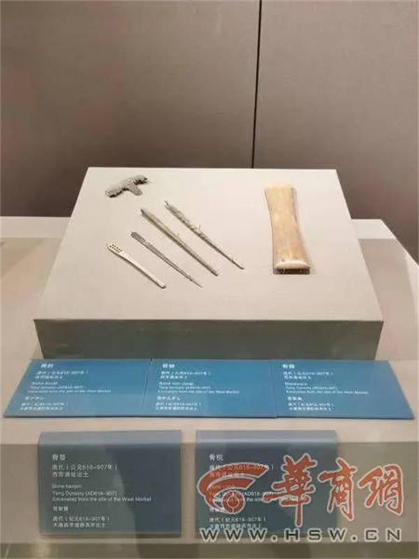 在南大街中部街南,发现梳、钗、笄、刻花的骨饰等大量骨制装饰品,以及料珠、珍珠和玛瑙、水晶等制的装饰品。此外还出土了少许金饰品和大量的骰子与制作骨器的骨料等。推测可能是珠宝商的遗址。