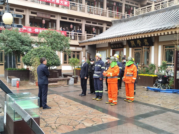最后,大唐西市国际古玩城总经理何军对今天参加演练的人员表示感谢,对今后的消防安全工作提出了更高的要求,并对今后的安全工作进行了全面部署。
