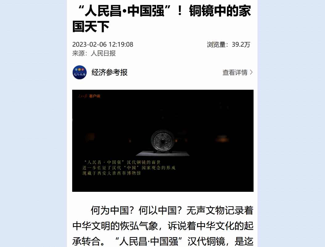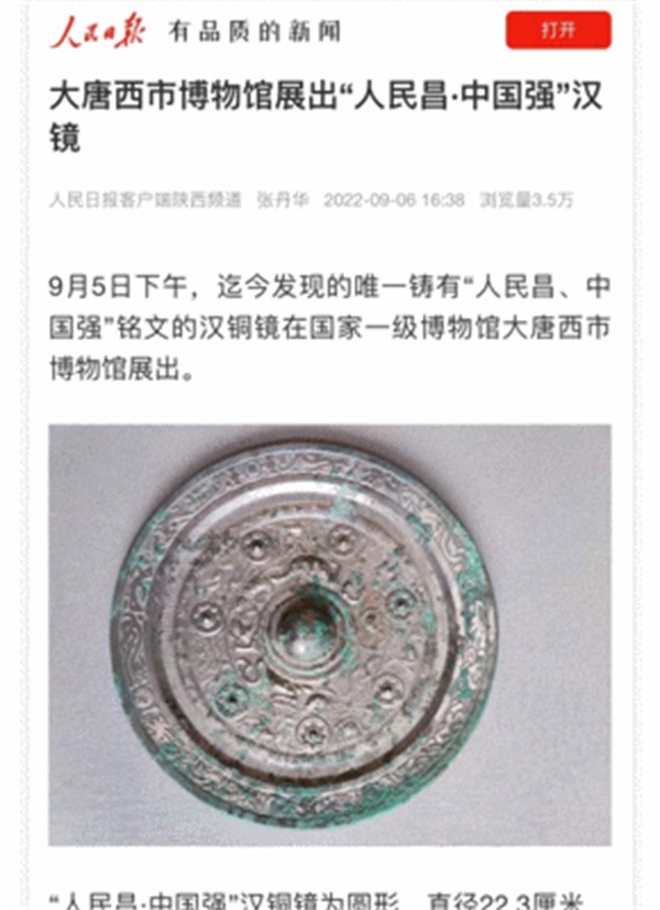 “人民昌·中国强”汉代铜镜是一件集