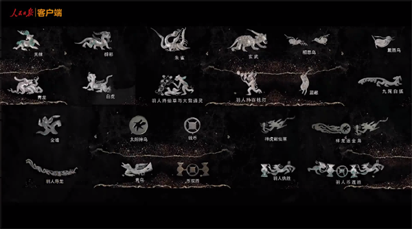 铜镜内区铸有龙虎相望的纹饰;中区天禄、辟邪、青龙、白虎、朱雀、玄武、羽人持百枝灯、大黎传信、羽人飞仙,均为汉代盛行的祥瑞象征;镜缘西王母戴的胜、币连胜、九尾白狐、金蟾、祥龙相向逐金乌等,承载着丰富的思想文化内涵和独特的审美情趣,也是古代社会盛世到来、明君出现的吉兆。25种形态各异的通神精灵,呈现出一派虎跃龙腾、凤舞龟行、羽人献瑞、神兽奔驰的盎然生机,反映了人们对美好生活的向往,对健康长寿、吉祥好运的追求。