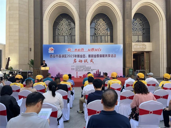 6月14日上午,由莲湖区委组织部、区委非公和社会组织工委主办的“新心相连·同心同行”2023年新业态、新就业群体服务季启动仪式在大唐西市西虹天上市街区举行。“莲心港湾”服务联盟成员部门、各街道分管领导、新就业群体代表等50余人参加此次活动。