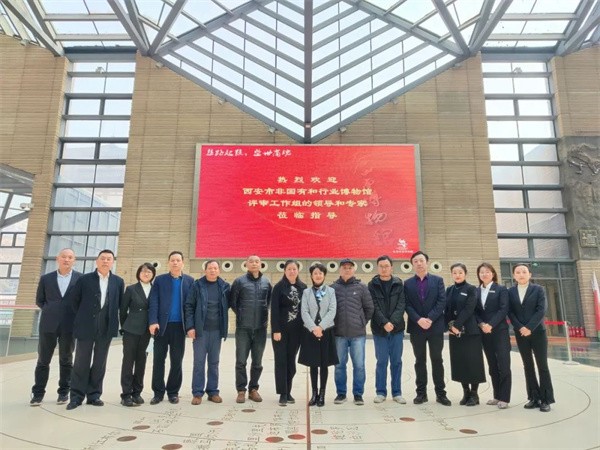 2022年12月5日,由西安市文物局、西安市财政局联合组织的专家评审组一行5人来大唐西市博物馆进行实地考核。馆长王彬带领博物馆中层以上人员欢迎了考评组一行。会议由副馆长阴玲玲主持。办公室主任樊晋以PPT的形式,从博物馆的综合管理与基础设施、藏品管理与科学研究、陈列展览与社会服务、获奖情况等方面综合介绍了我馆2021年度开展的亮点工作。考评组认真地听取了汇报,并查看相应资料,对博物馆展区、社会教育活动中心、安全设施设备等进行了检查。